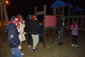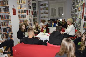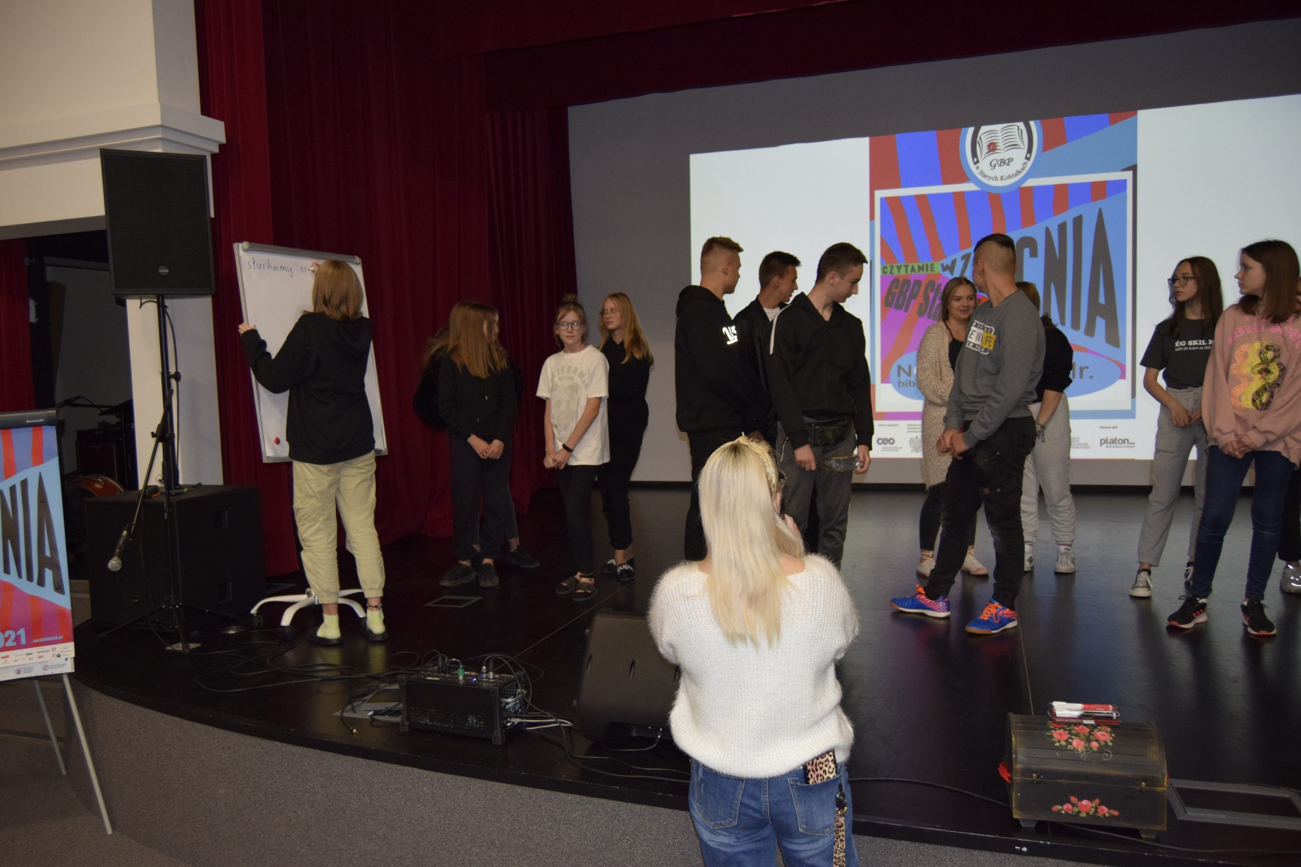 Uczestnicy akcji "Noc Bibliotek" spotkali się o 21.00, po powitaniu uczestnicy wspólnie ustalili i spisali na tablicy zasady, którymi będą się kierować podczas wspólnej zabawy. chętnie uczestniczyli w zabawach integracyjnych, samodzielnie przygotowywali posiłki. Podczas "Nocy Bibliotek" został wyświetlony  film udostępniony przez organizatorów " Operacja CZŁOWIEK W CZERNI", wspólnie odczytaliśmy wiersz, wiele emocji dostarczył nocny tor przeszkód z zawiązanymi oczami. Uczestnicy dzielnie wytrzymali całą noc tylko nielicznym na chwilę przymknęło się oko. Zmęczeni ale zadowoleni opuścili bibliotekę o 7 rano.